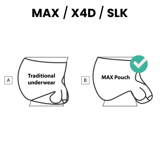 The “nose” shaped pouch that is applied on a variety of product lines like X4D, MAX and SLK makes sure your genitals rest in a natural position throughout the day.