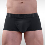 Ten years ago we developed the world’s first three-dimensional pouch with no vertical seam in the middle. In this new upgrade we have reduced the average width of the pouch a little bit, taking it closer to a “U” shape than a “halfmoon”, and we have moved the bottom seam slightly back. This revolutionary pouch concept will make you FEEL even more comfortable and fully supported, anywhere and anytime, and just like before the adaptable design enables you to place your genitalia to the front or sideways. Now you can forget about confinements, chaffing and friction, and start feeling much, much comfier and smoother down there. This thong design has minimal rear coverage. It only has a narrow fabric connecting the pouch with the back of the waistband.