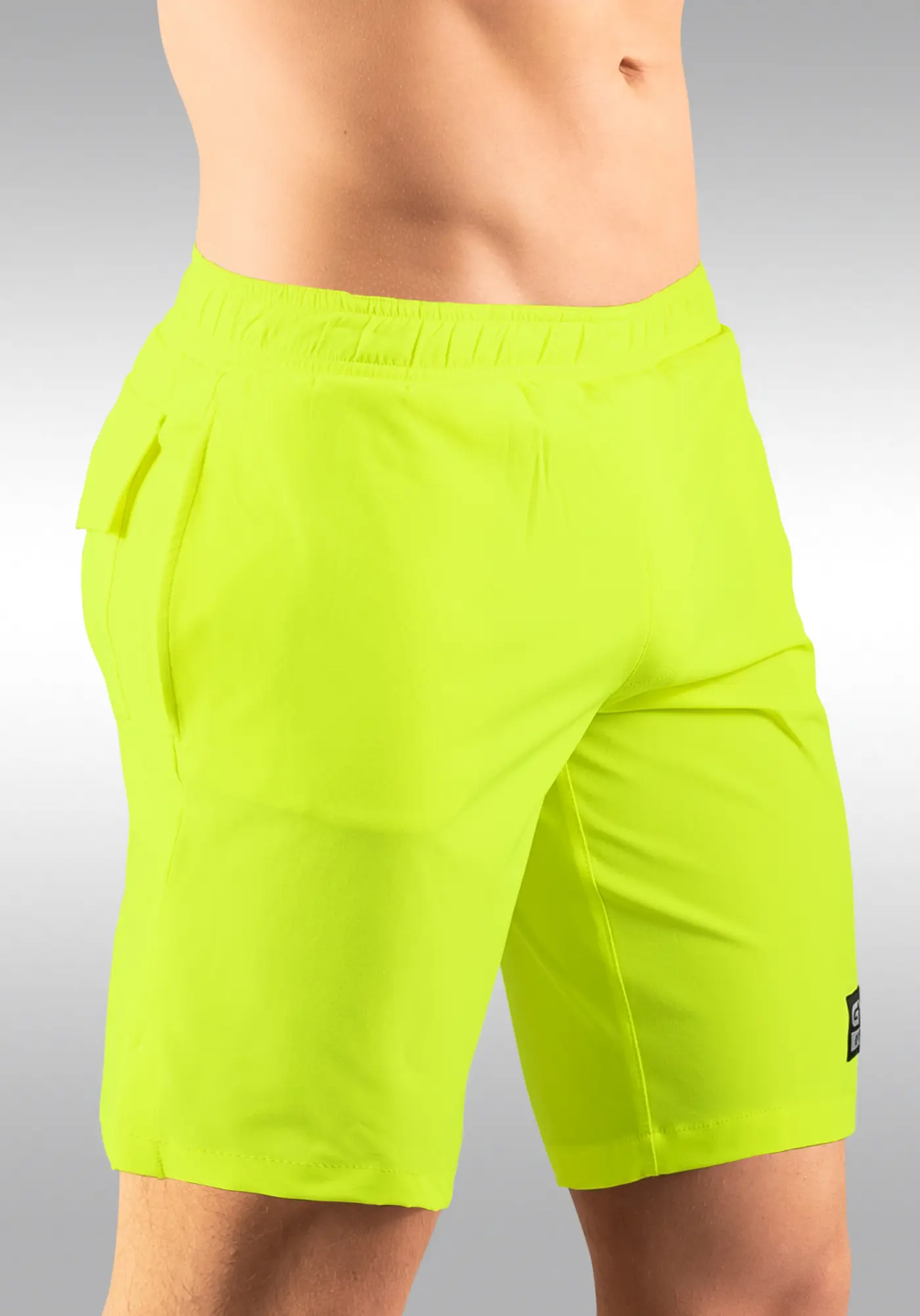 This is another feature that makes our GYM Board Short in Neon Yellow so unique and ideal for surfing or any other sports in the water: Unlike with common men’s board shorts the outer fabric is elasticized so that virtually nothing stands in the way when you move.
