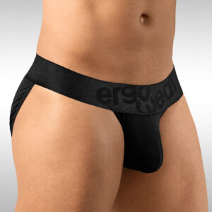 The MAX Bold Bikini in black features a bold 50mm signature elastic waistband in satin finish, with a discreet Ergowear logo in front and isotype in the back. This is our widest waistband and the additional width has various advantages: Visually there’s a slimming effect because the proportion of the waistband to the rest of the underwear changes, making it look as if it was a smaller size. Also, the additional coverage may reduce the so-called “muffin top” effect, and it adds 20% more support.