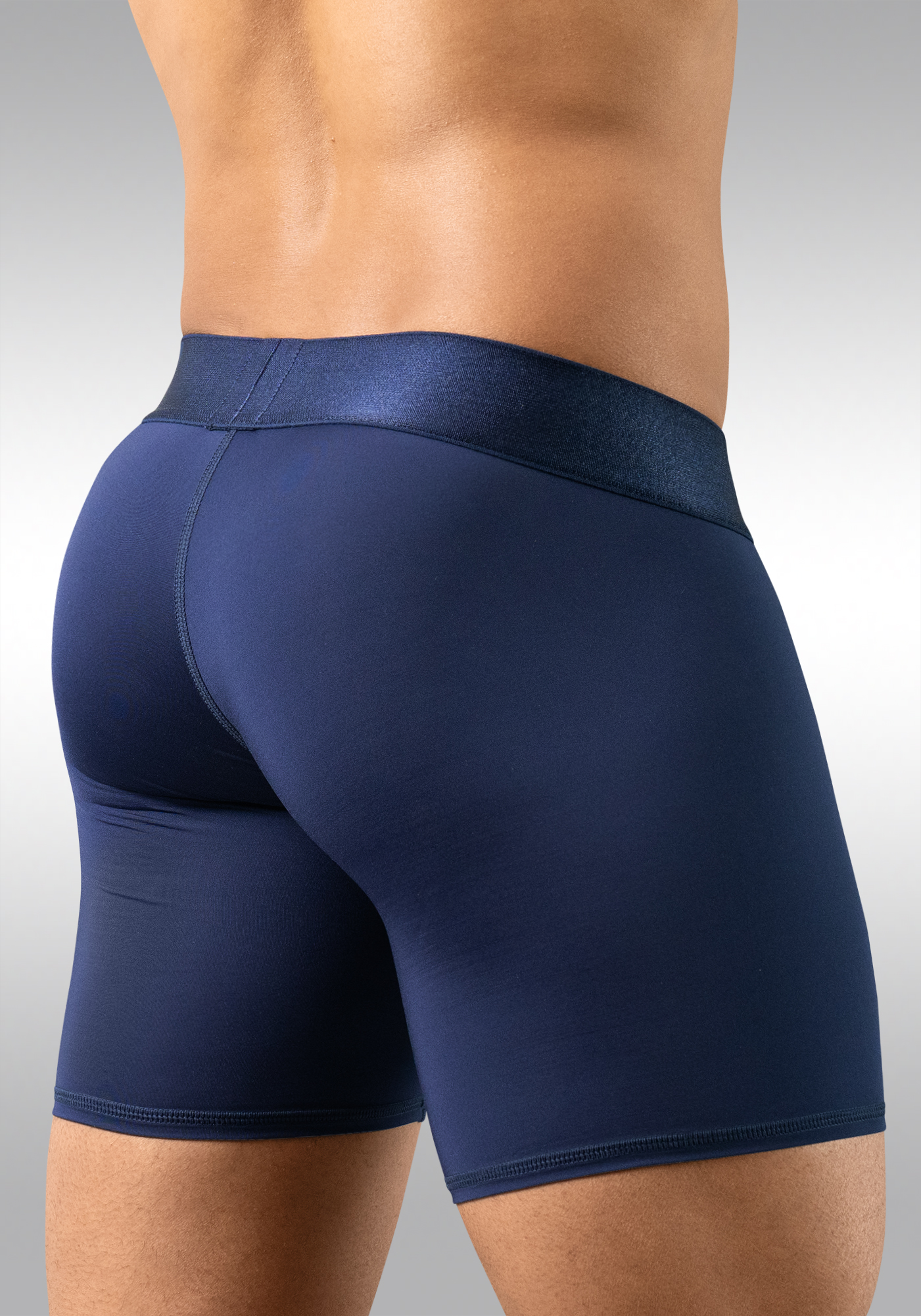MAX Bold Midcut in navy blue features a bold 50mm signature elastic waistband in satin finish, with a discreet Ergowear logo in front and isotype in the back. This is our widest waistband and the additional width has various advantages: Visually there’s a slimming effect because the proportion of the waistband to the rest of the underwear changes, making it look as if it was a smaller size. Also, the additional coverage may reduce the so-called “muffin top” effect, and it adds 20% more support.