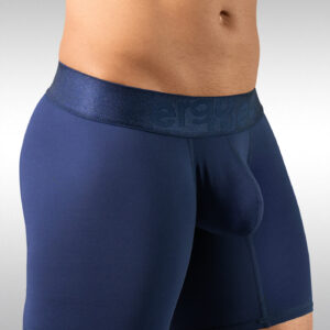 The 3-dimensional, nose-shaped MAX pouch gently lifts your anatomy and provides enough room, so that your genitals stay in place, without being confining or too tight. The legs and rear of the MAX Bold midcut briefs in navy blue are also designed to follow the exact shape of a man’s body so that every muscle is properly supported and the fit just seems natural.. For warmer climates we recommend styles with less coverage such as men’s bikinis or thongs. .