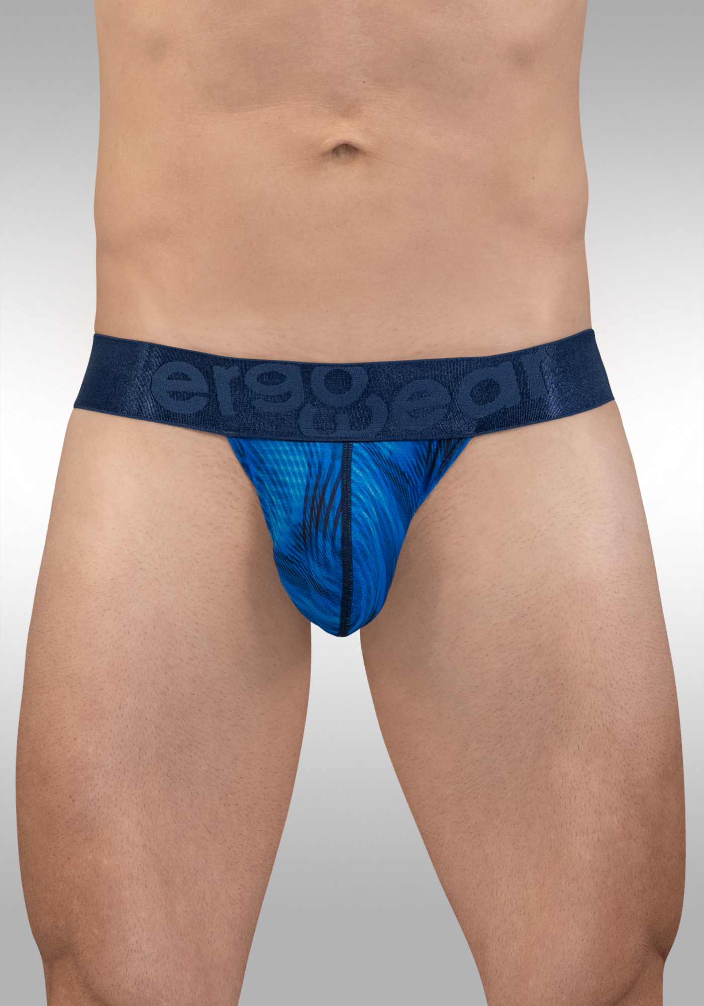 The MAX Bold SE G-String in mid blue features a striking 50 mm satin-finish signature elastic waistband, accented with a discreet Ergowear logo at the front and the brand isotype at the back. As our widest waistband, it offers several advantages. Visually, the broader band creates a slimming effect by altering the proportion between the waistband and the body, making the underwear appear more streamlined. The extra coverage also provides approximately 20% more support.