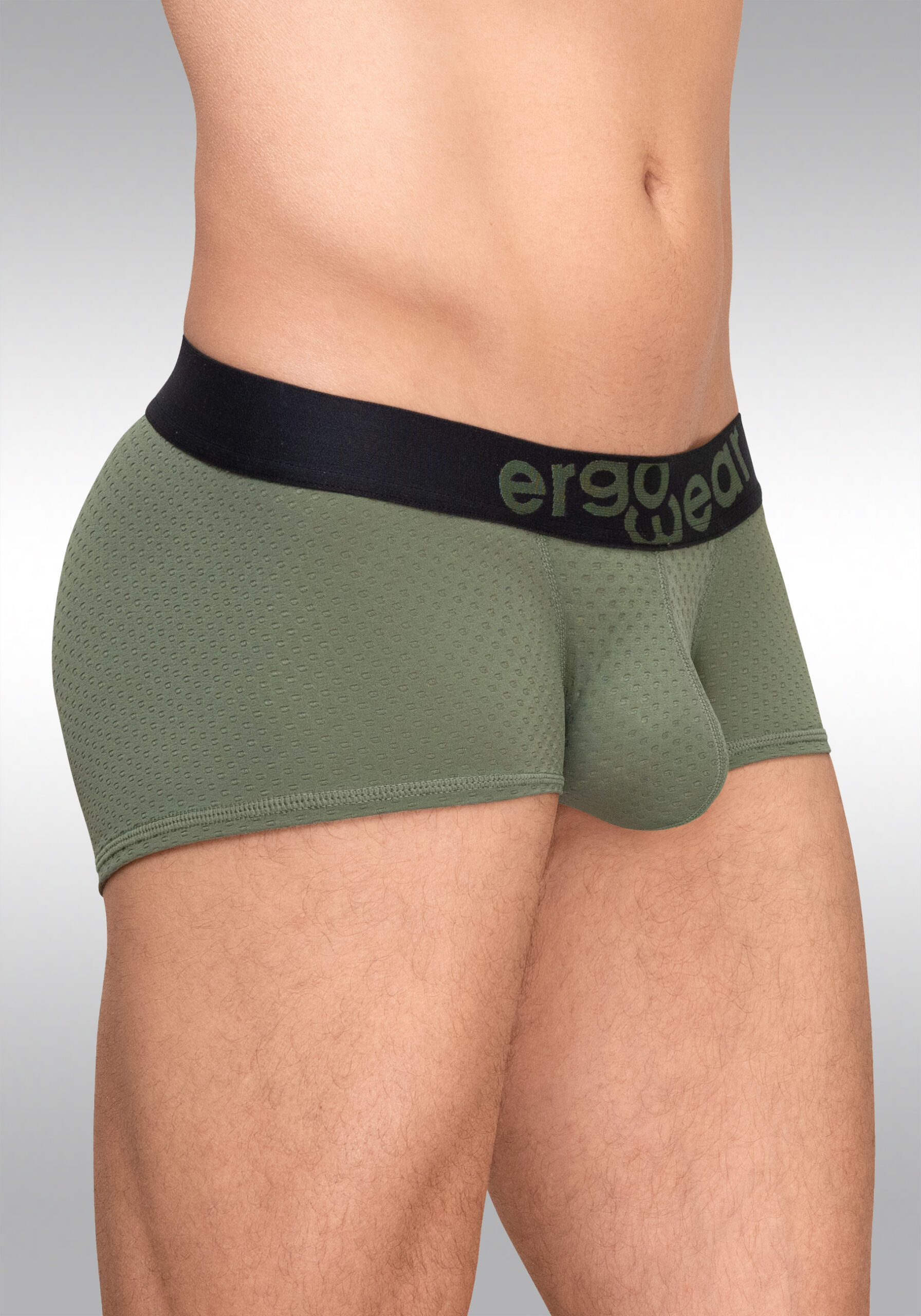 The 3-dimensional, nose-shaped MAX pouch of the MAX Flow Boxer – dark green gently lifts your anatomy and provides enough room, so that your genitals stay in place, without being confining or too tight. The rear and legs of the MAX Flow Boxer are also designed to follow the exact shape of a man’s body so that every muscle is properly supported and the fit just seems natural. For warmer climates we recommend styles with less coverage such as men’s bikinis or thongs.