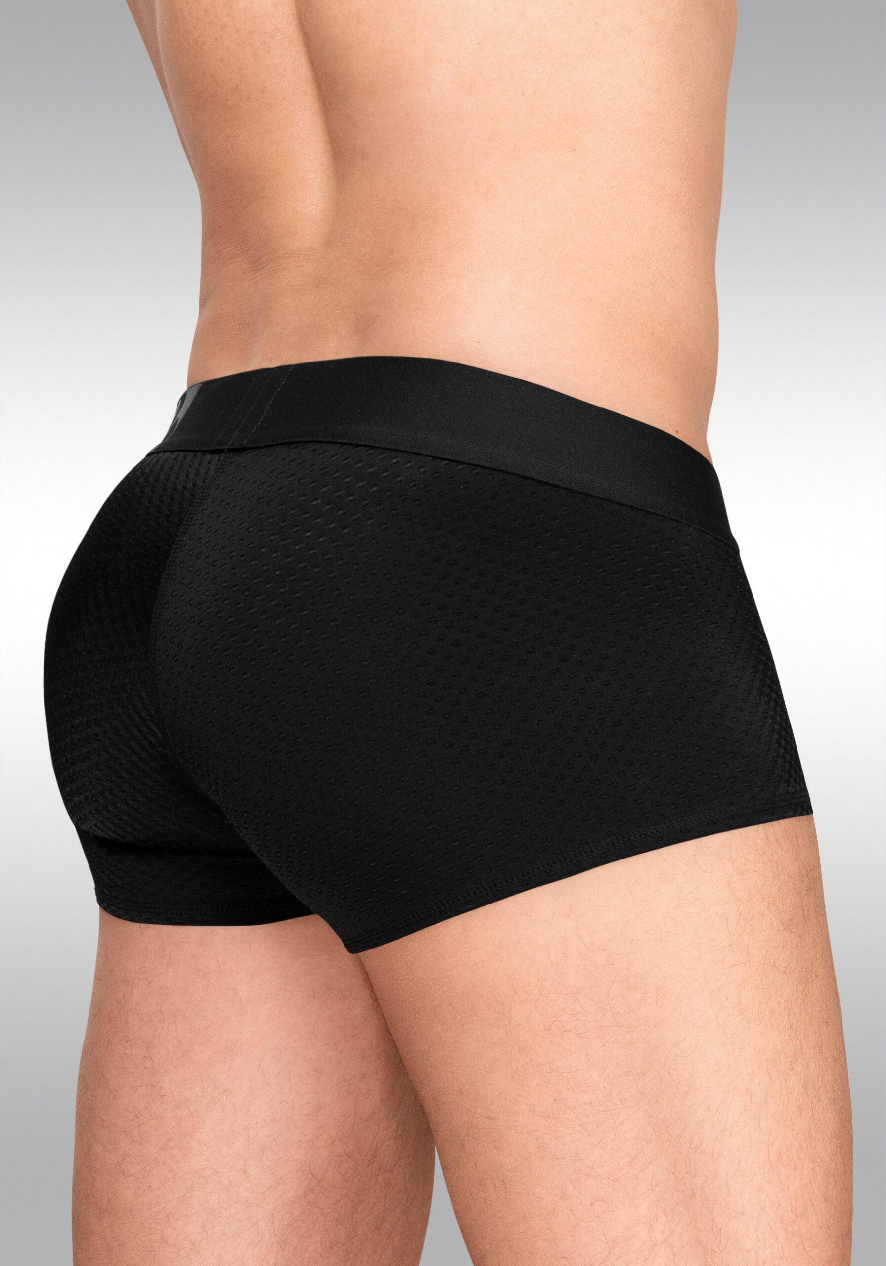 The 3-dimensional, nose-shaped MAX pouch of the MAX Flow Boxer – black gently lifts your anatomy and provides enough room, so that your genitals stay in place, without being confining or too tight. The rear and legs of the MAX Flow Boxer are also designed to follow the exact shape of a man’s body so that every muscle is properly supported and the fit just seems natural. For warmer climates we recommend styles with less coverage such as men’s bikinis or thongs.