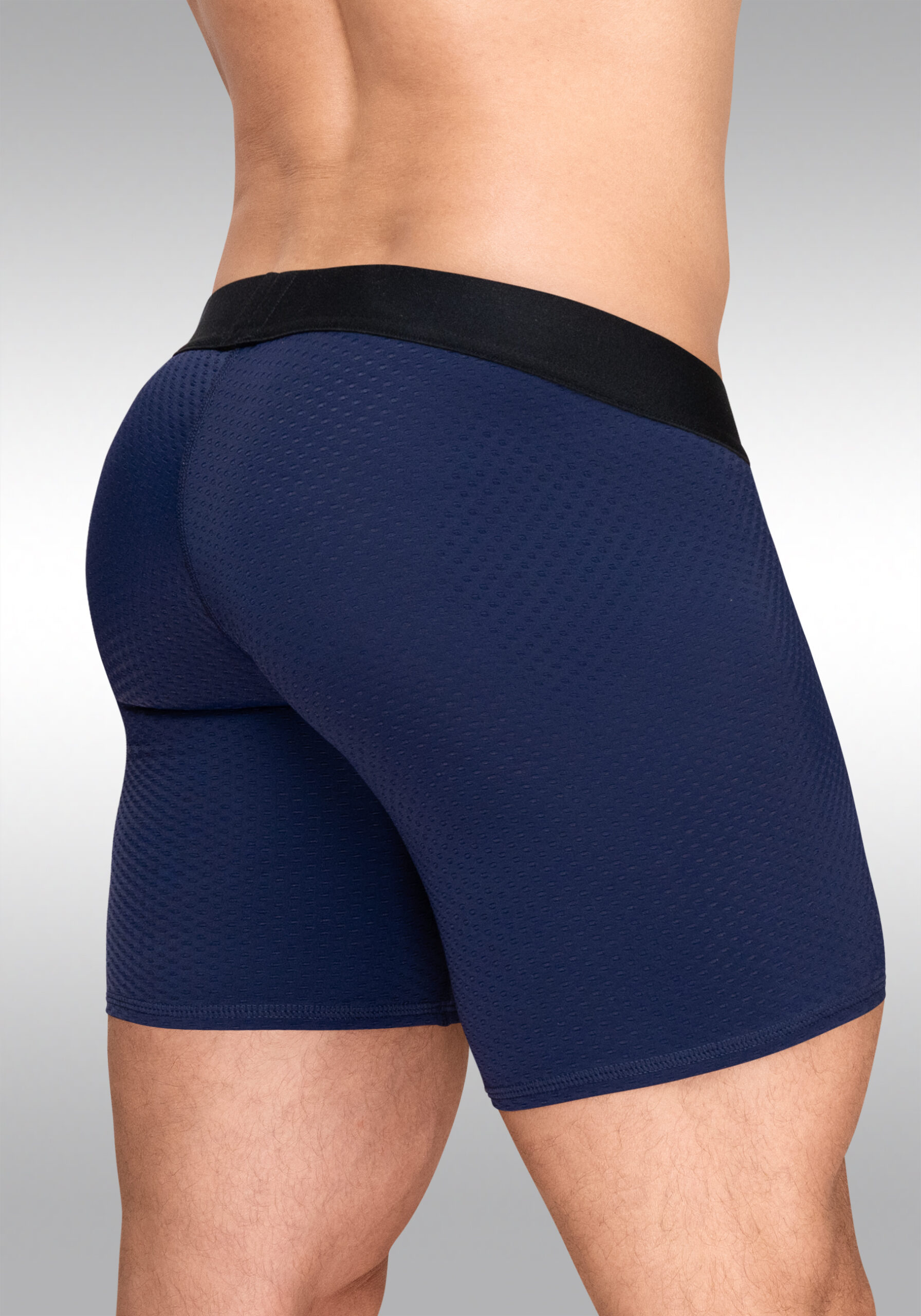 The 3-dimensional, nose-shaped MAX pouch of the MAX Flow Midcut – dark blue gently lifts your anatomy and provides enough room, so that your genitals stay in place, without being confining or too tight. The rear and legs of the MAX Flow Midcut are also designed to follow the exact shape of a man’s body so that every muscle is properly supported and the fit just seems natural. For warmer climates we recommend styles with less coverage such as men’s bikinis or thongs.