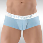 The 3-dimensional, nose-shaped MAX pouch midcut in light blue gently lifts your anatomy and provides enough room, so that your genitals stay in place, without being confining or too tight. The rear and legs of the MAX SE Midcut Boxers are also designed to follow the exact shape of a man’s body so that every muscle is properly supported and the fit just seems natural. For warmer climates we recommend styles with less coverage such as men’s bikinis, thongs or jockstraps.